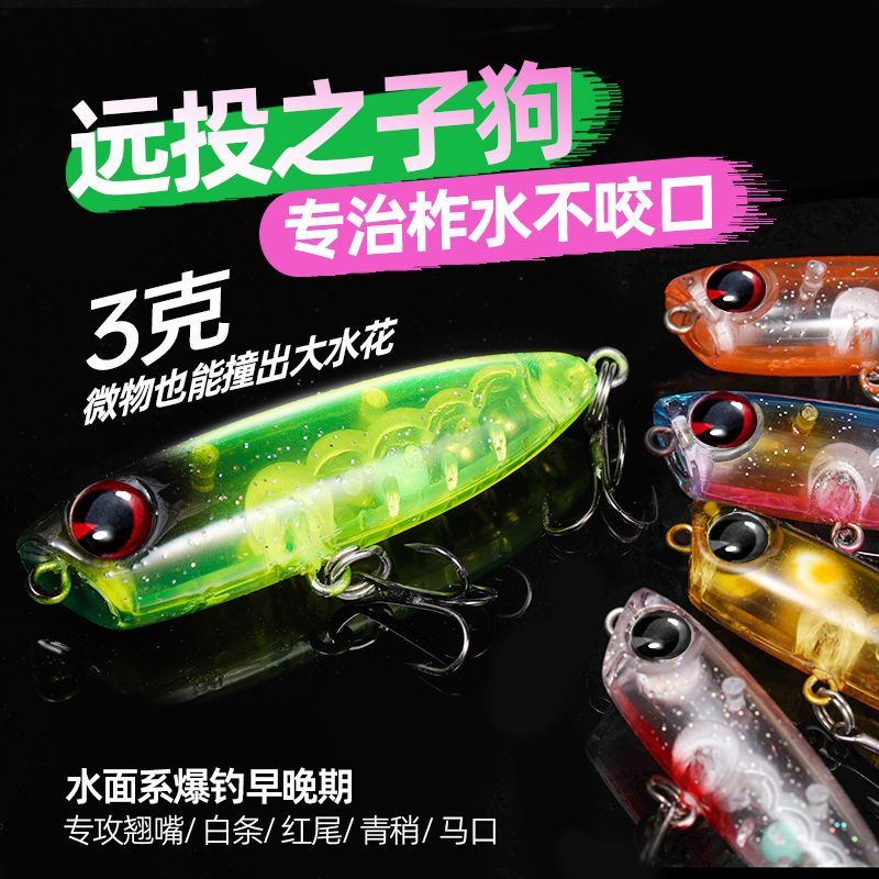 微物浮水之子狗3.5g水面系波爬路亚假饵铅笔马口红眼迷你白条鲈鱼