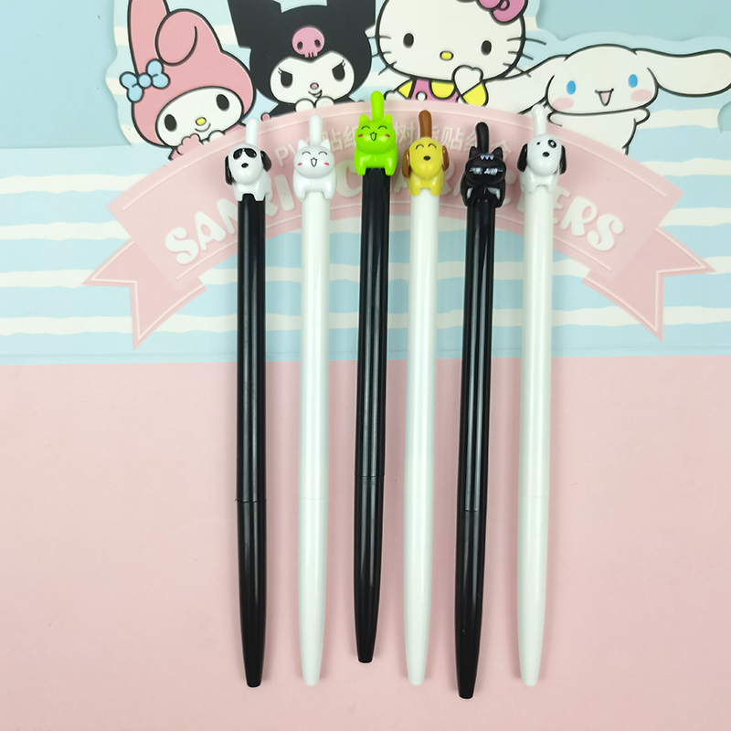 名创优品miniso跳动的猫狗尾巴按动中性笔黑色创意书写考试学生