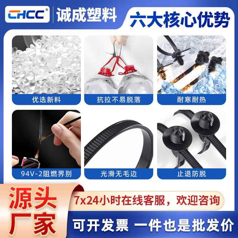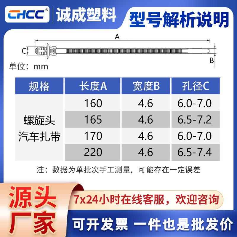 插销式螺旋头汽车卡扣扎带自锁式固定尼龙4.6杉树型塑料黑色轧带