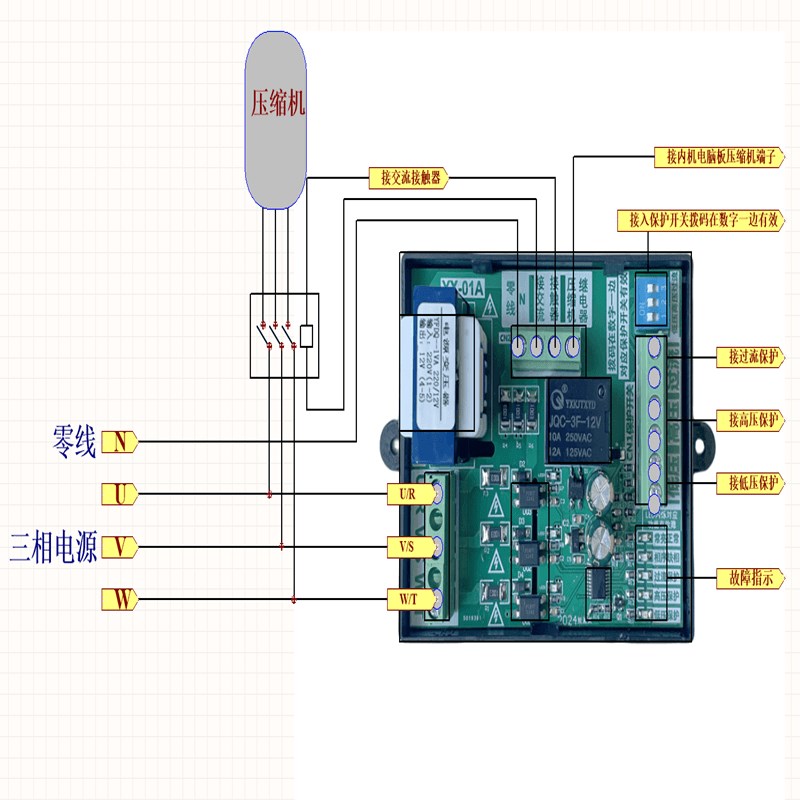 空调三相保护板相序缺相错相压缩机压力过流保护板保护W器380v通
