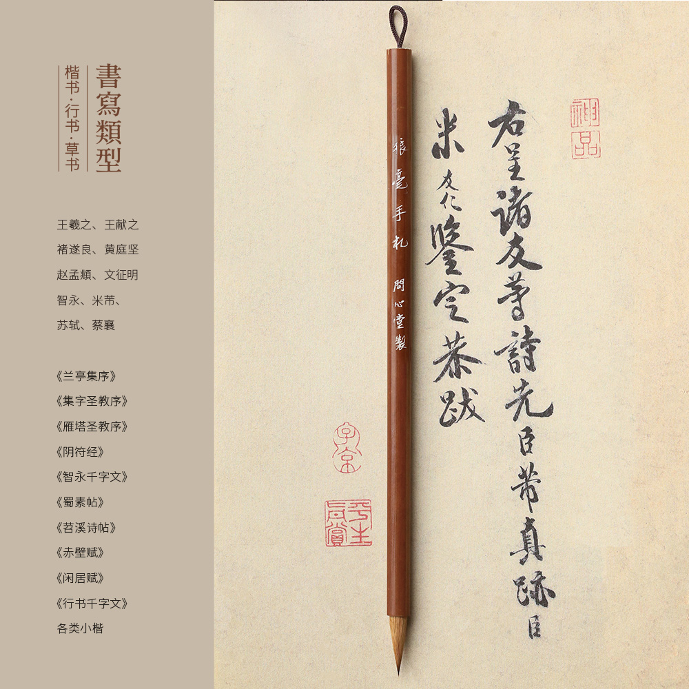 问心堂手札狼毫毛笔书法专用狼毫王羲之赵孟頫高档楷书行书草书专业级毛笔初学者临帖练字中小楷国画小号湖笔