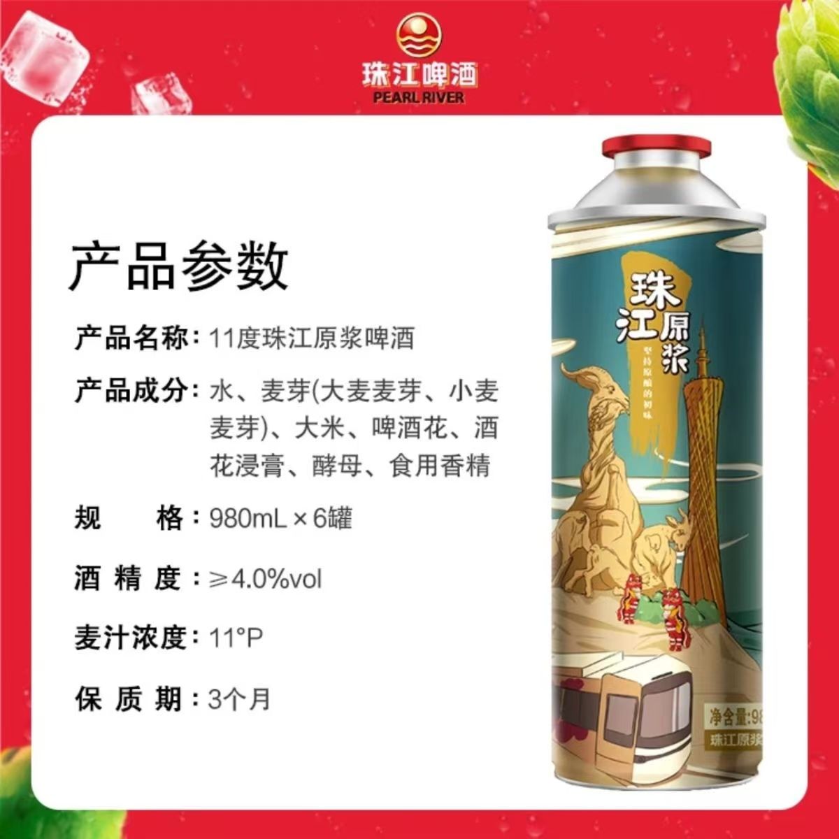 汪苏泷代言珠江精酿原浆啤酒 980ml*6罐整箱热卖爆款畅饮必备
