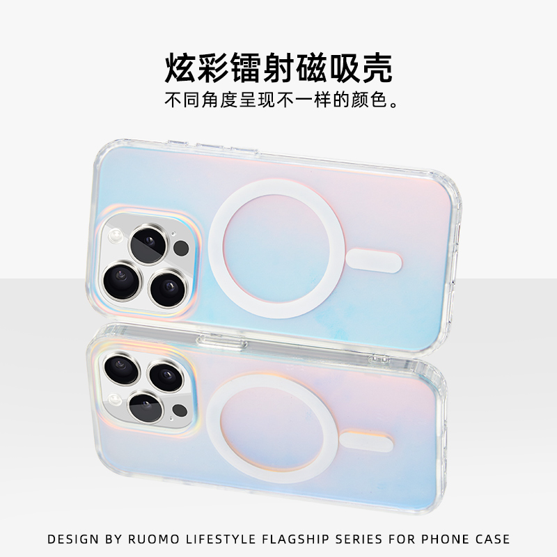 若墨适用苹果17promax手机壳新款iphone16pro磁吸女15高级感magsafe镭射14彩色渐变13小众磨砂创意时尚ip12