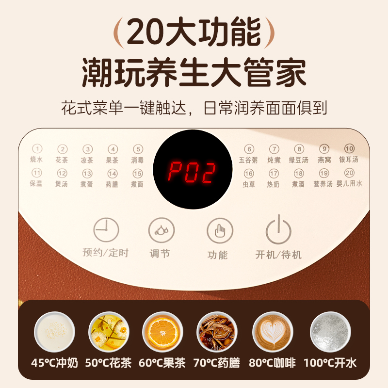 小熊养生壶2L大容量煮茶壶多功能家用烧水壶办公室煮茶器2025新款