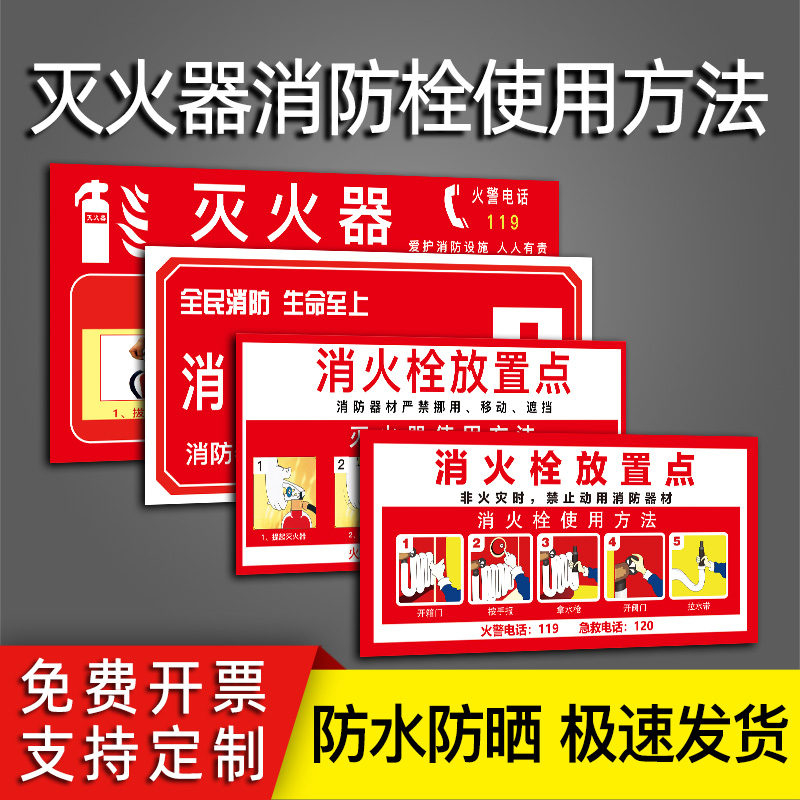 消防栓灭火器放置点位置标识牌消火栓使用方法门箱年检标签贴纸消防标识标牌说明防火门安全标识牌警示牌定制