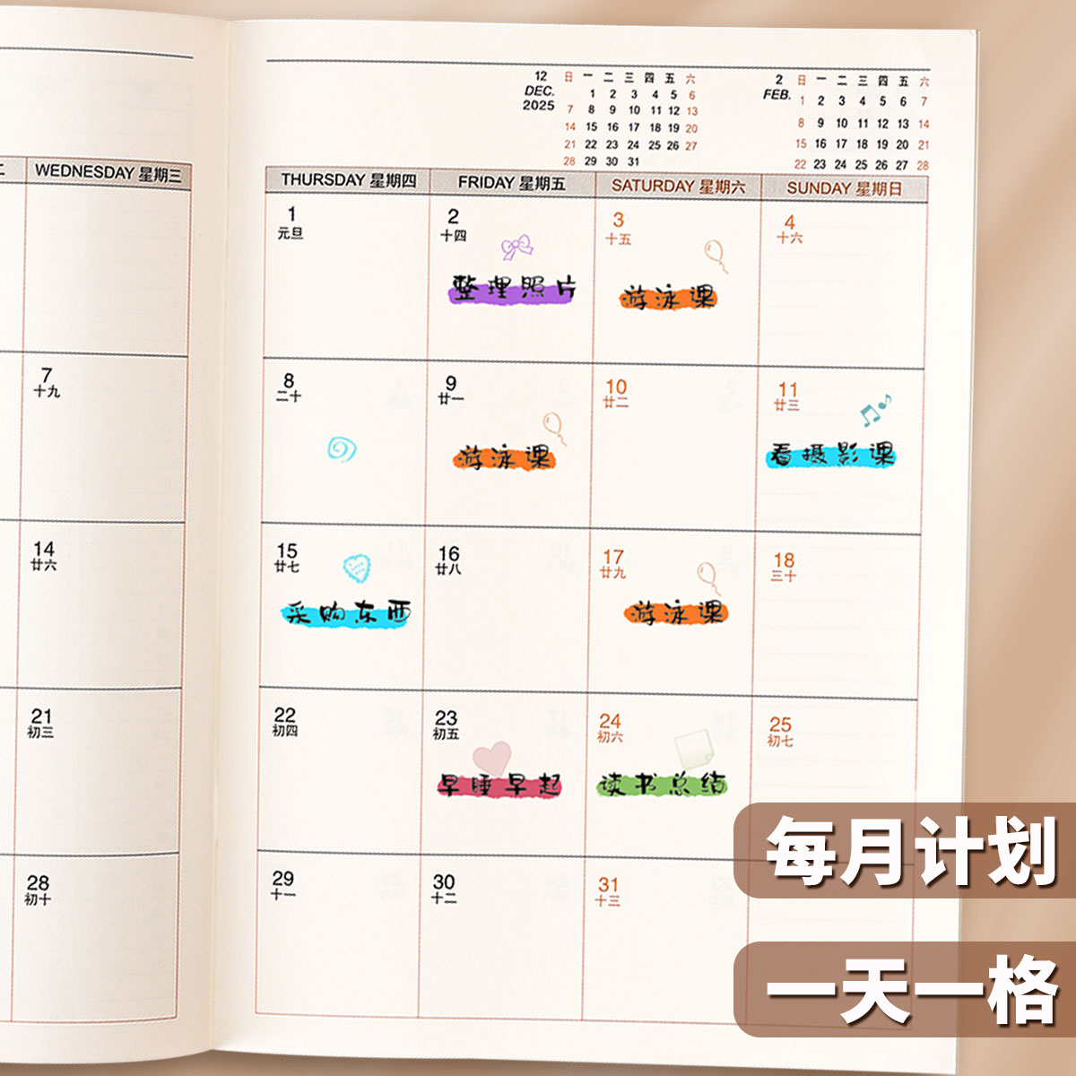 日历记事本2026年工作小秘书月计划本日程A4牛皮纸效率手册本定制