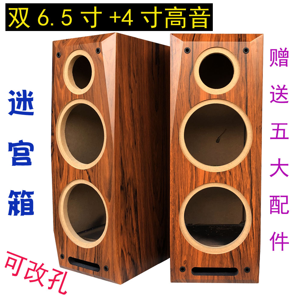双6.5寸三分频迷宫型木质音箱空箱体低中音4寸高音响汽车喇叭外壳