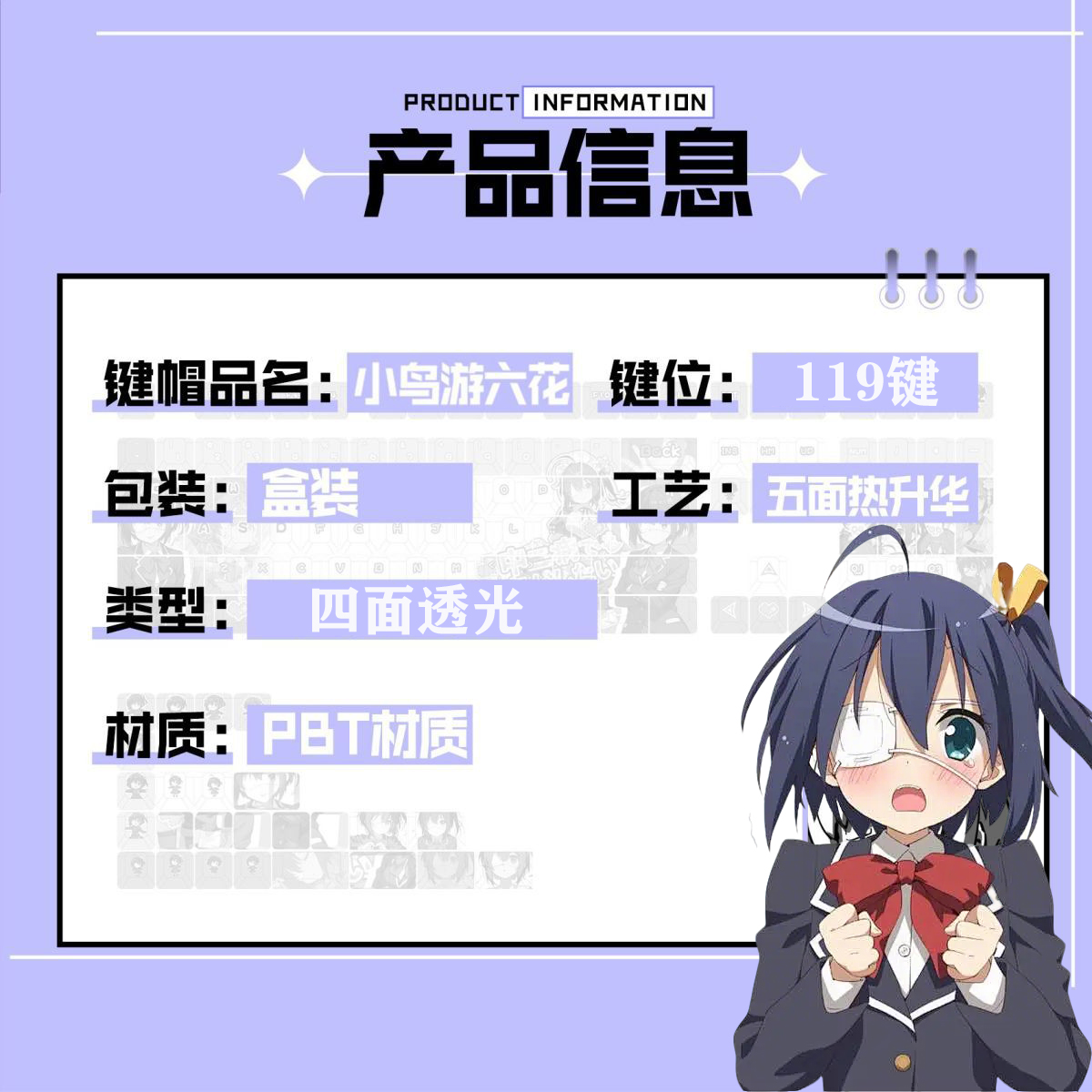 中二病也要谈恋爱小鸟游六花动漫四面透光PBT热升华机械键盘键帽