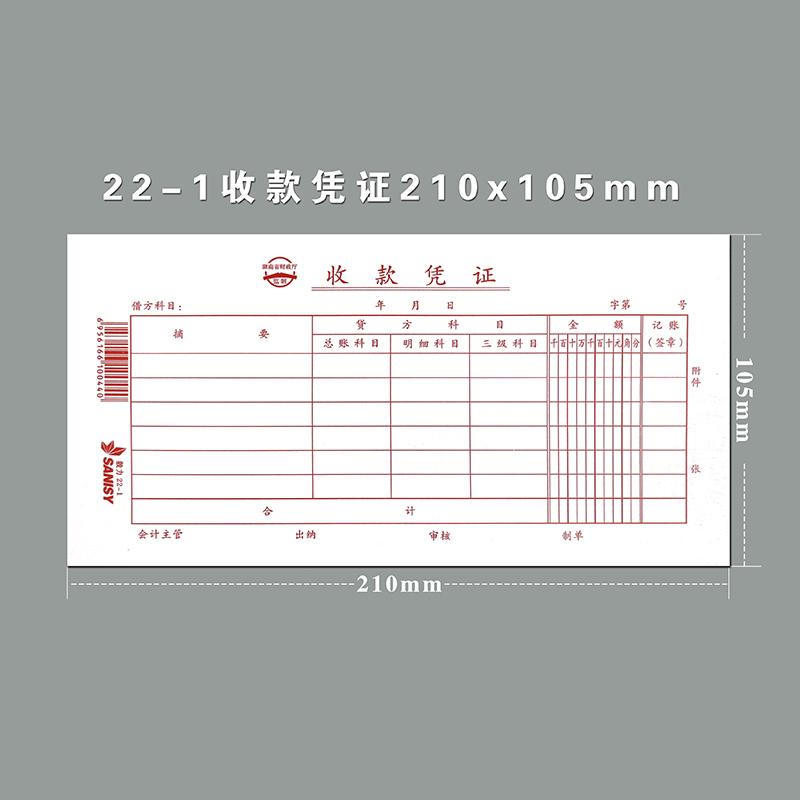 三益档案22-1收款凭证210x105mm10本装 会计收款凭证通用收付款证明单记账凭证单据财务用品定制订做logo