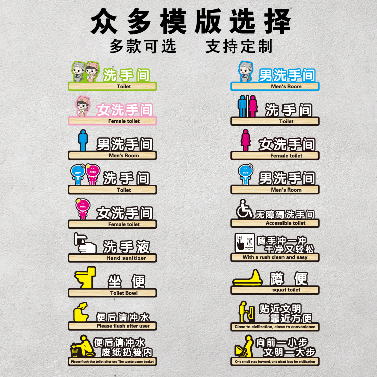 亚克力立体标牌商场医院男女洗手间提示牌无障碍通道便后请冲水垃圾扔篓内墙贴标识牌洗手液提识牌门牌定制