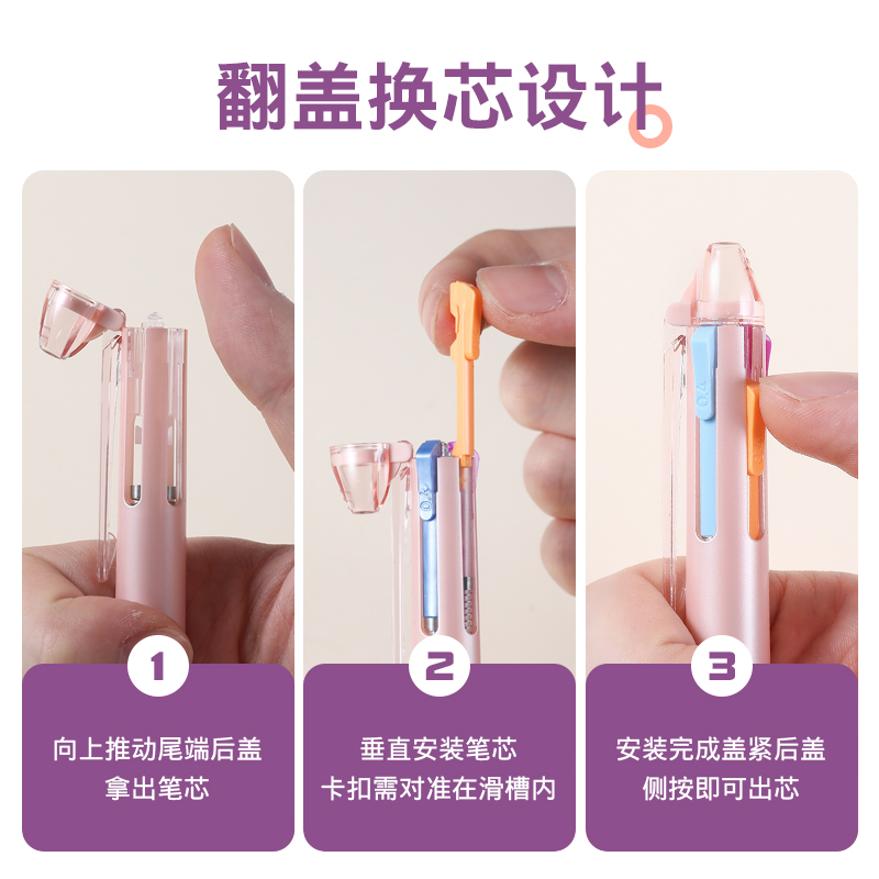 Planwith三色笔按动多色合一中性笔高颜值彩色学生做笔记专用标记笔多功能模块笔粉色红笔蓝笔错题订正记号笔