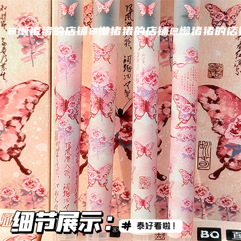 写给蝴蝶中性笔旋转出芯刷题笔渐变高颜值ins风女生款速干黑色水笔初中小学生专用好看圆珠笔顺滑水性签字笔