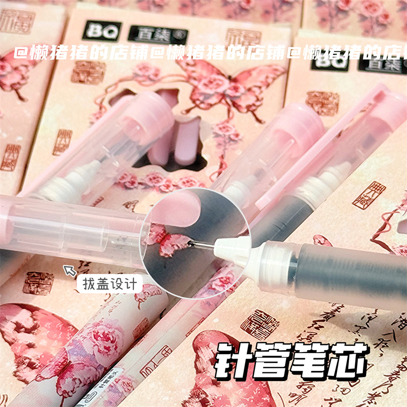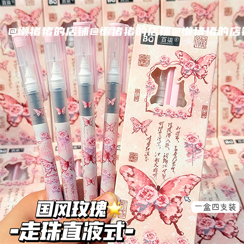 国风玫瑰直液式走珠笔高颜值国风学生考试用中性笔0.5m针管速干笔