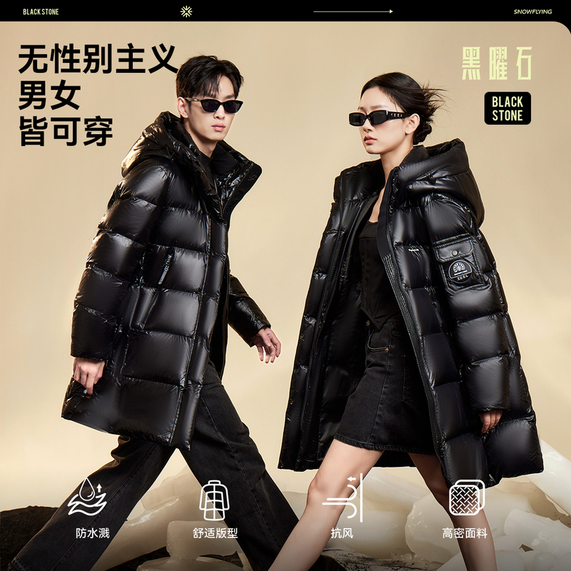 【黑曜石鹅绒服】雪中飞25冬新款男女情侣六格中长款羽绒服加厚