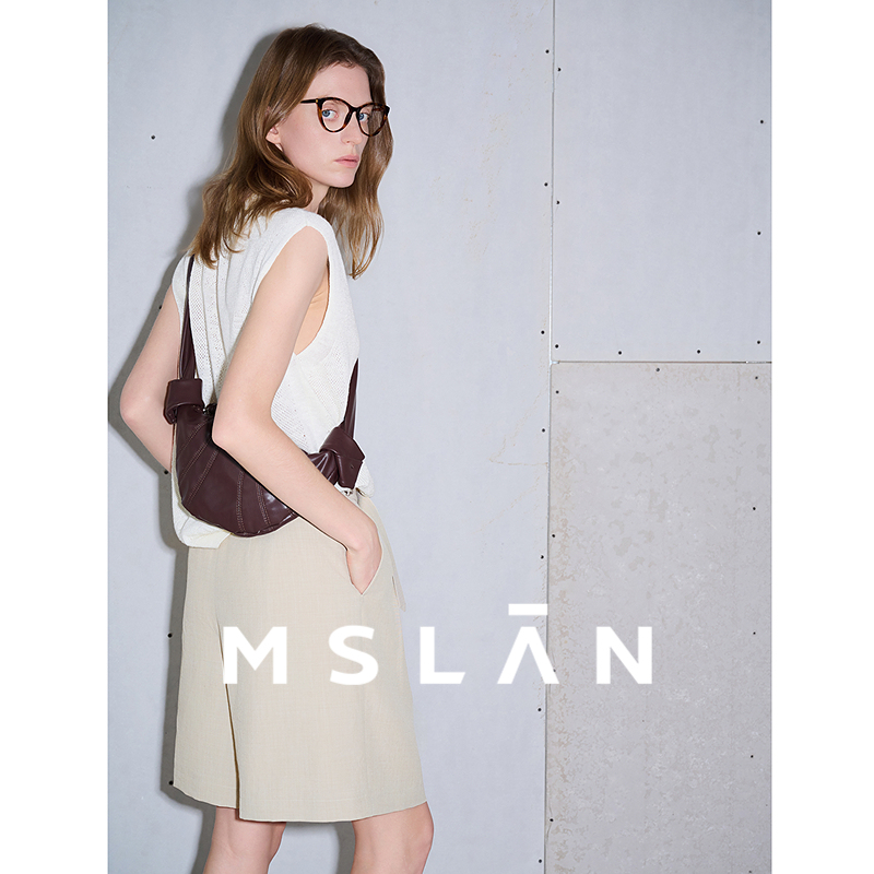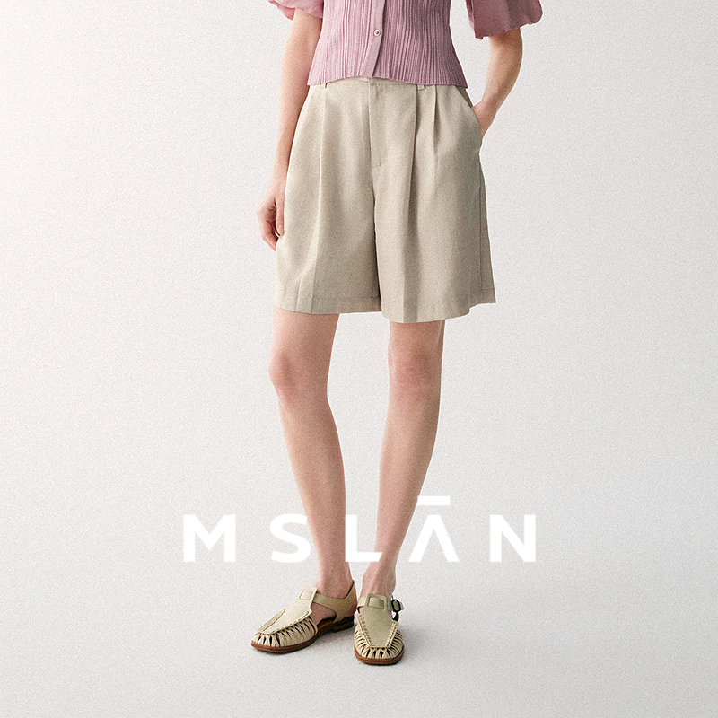 知识分子丨MSLAN复古卡其双仿麻料宽松五分裤西装短裤女MGBK426