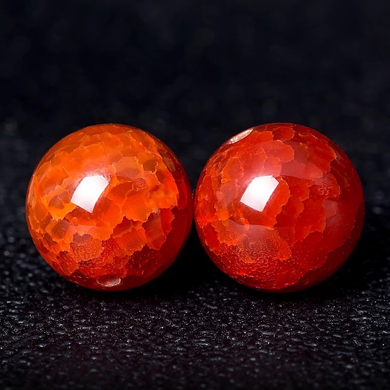 红龙纹玛瑙散珠子手链文玩DIY多宝配件编织材料手串圆珠龙鳞特别