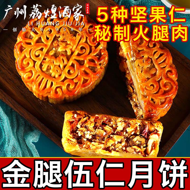 广州荔煌酒家金腿五仁月饼散装老式传统火腿伍仁叉烧礼盒装送礼