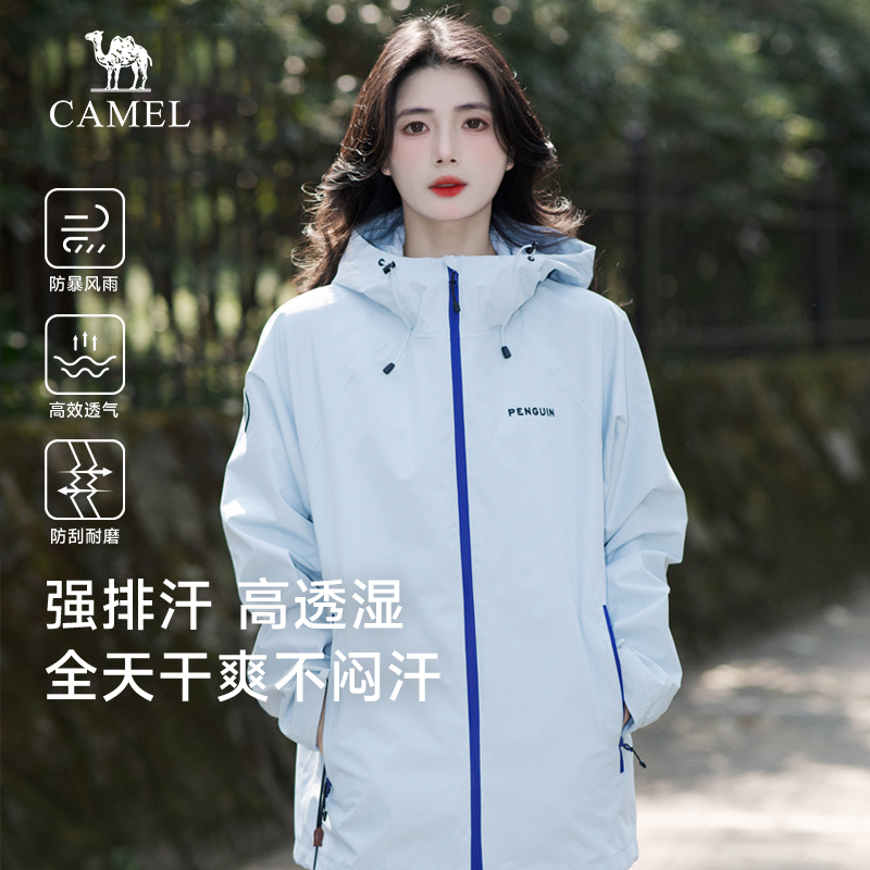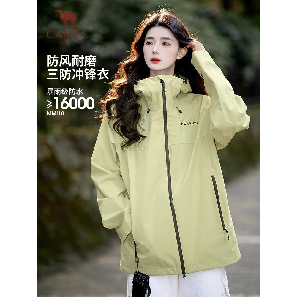 骆驼女装单层冲锋衣2025秋冬新款户外防风防水连帽立领男女款外套