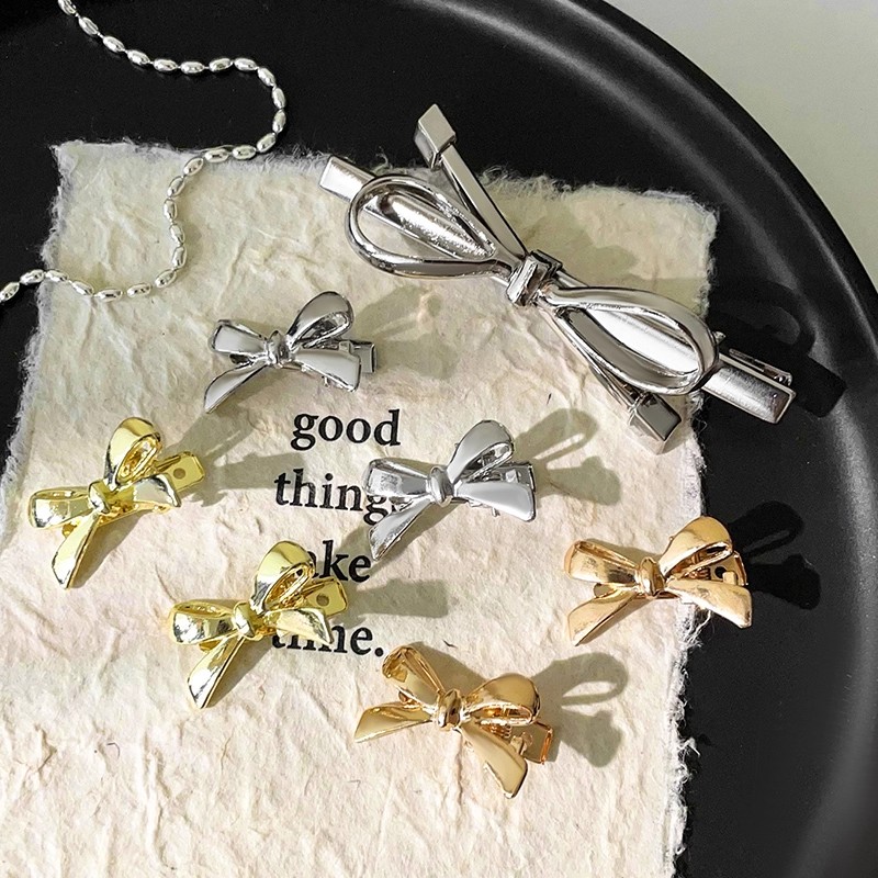 芭蕾风银色蝴蝶结发夹女ins韩系头饰简约侧边夹边夹披发装饰夹子