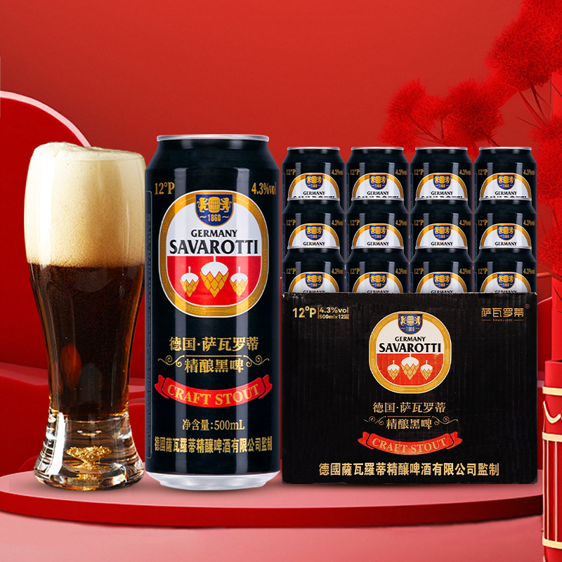 德国萨瓦罗蒂精酿原浆黑啤500ml*12罐无添加进口麦芽焦香浓郁