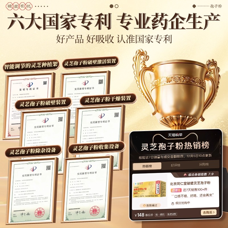 北京同仁堂灵芝孢子粉官方旗舰店正品长白山高破壁有机增强免疫力