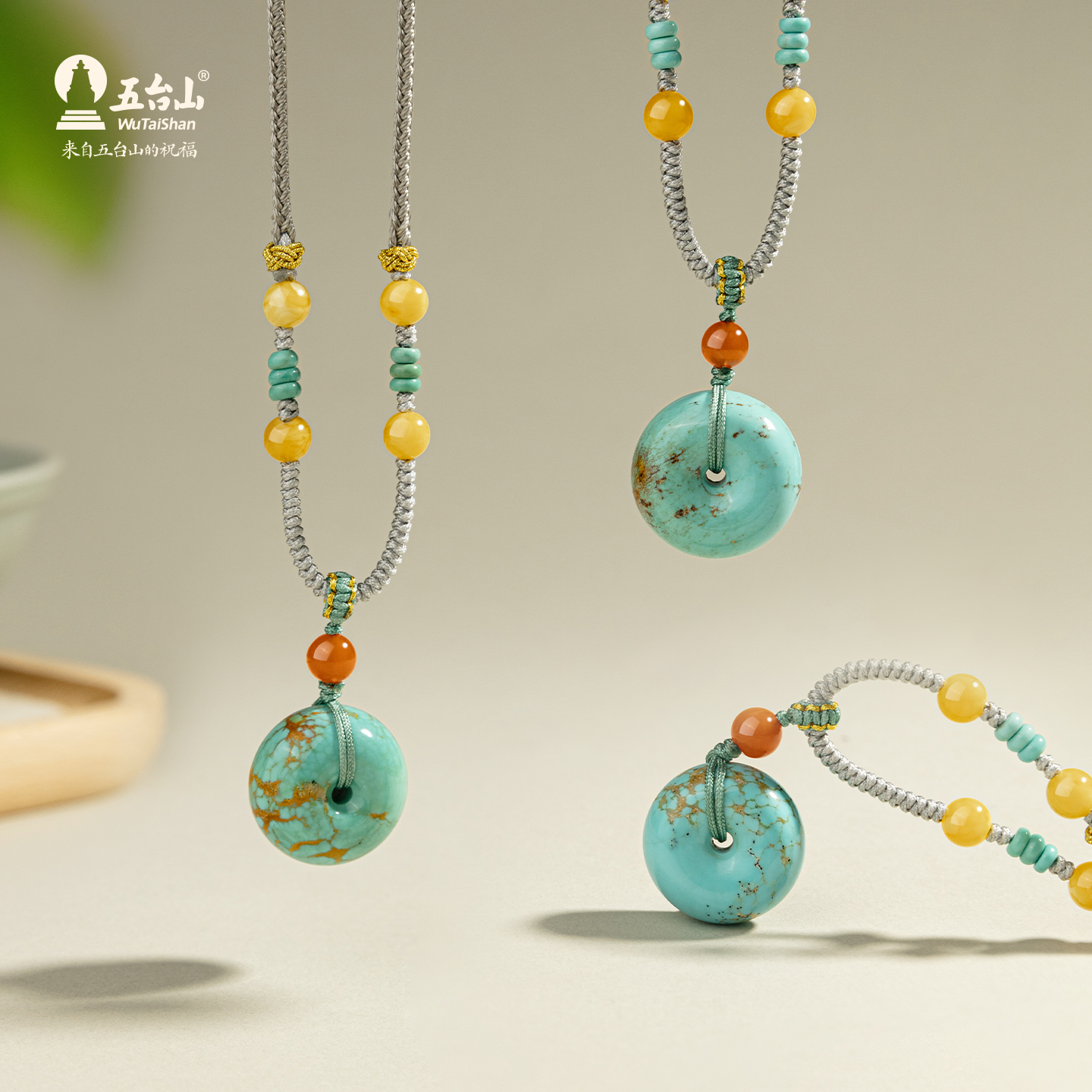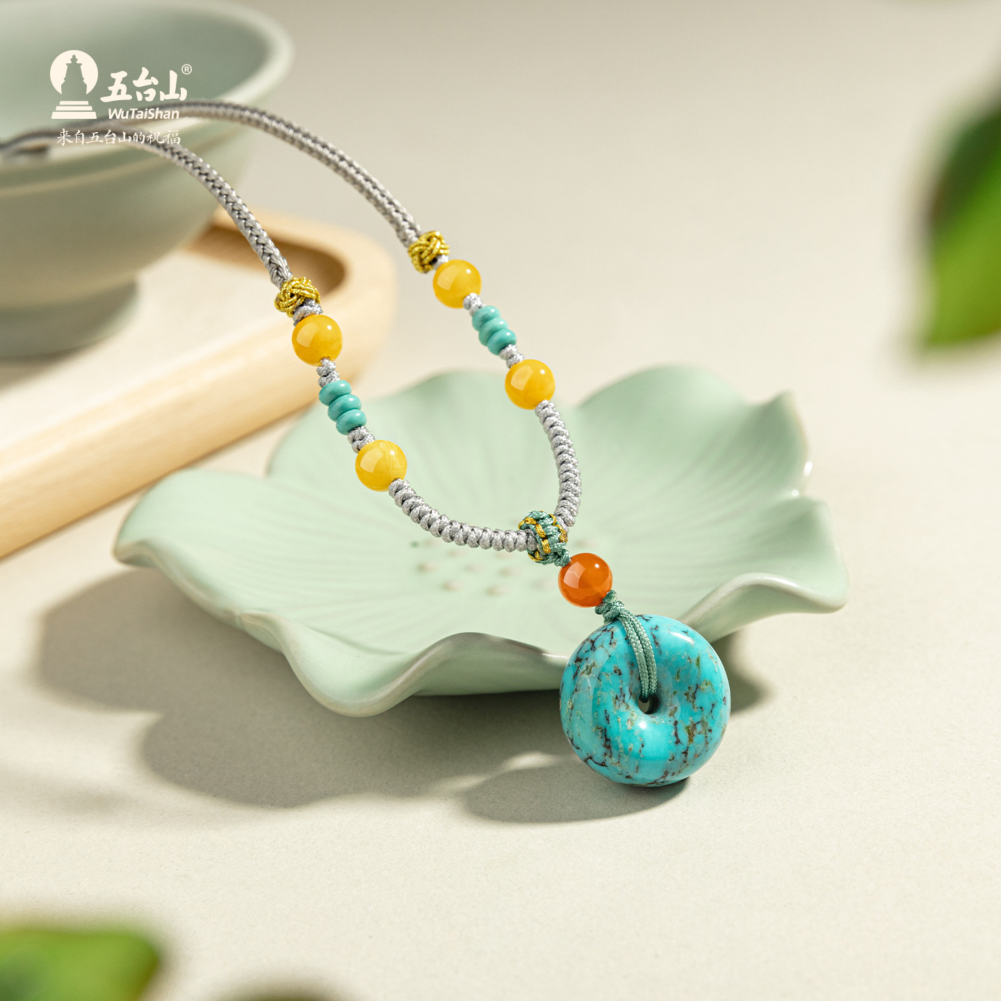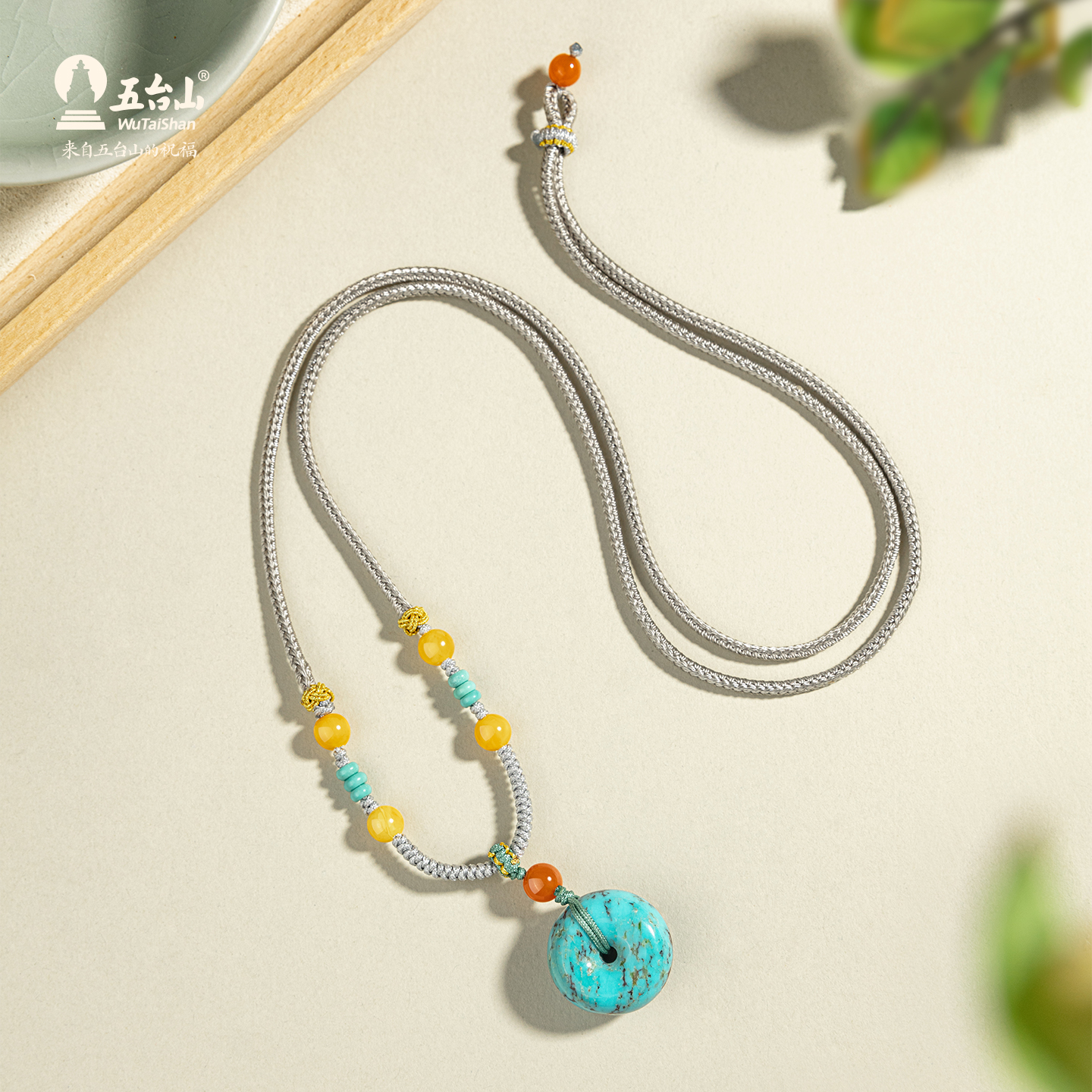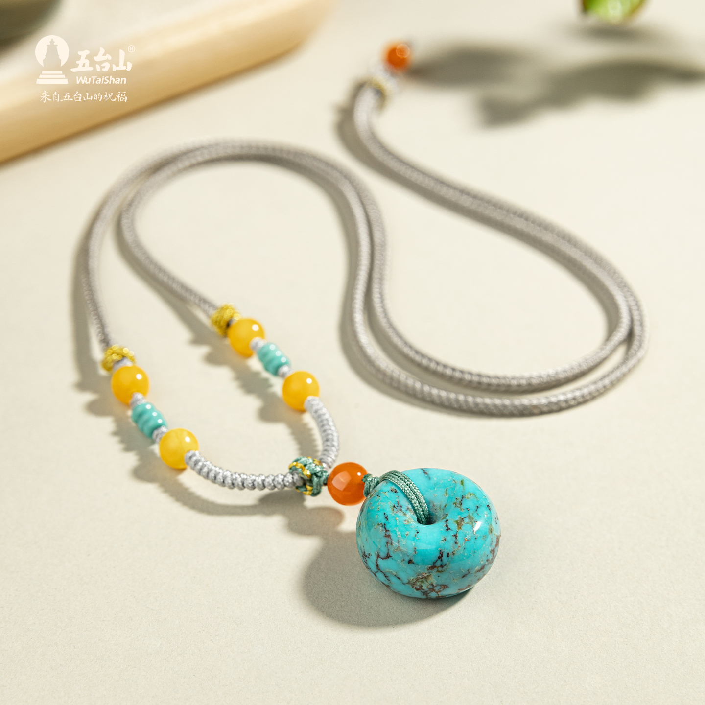 五台山天然绿松石平安扣项链蜜蜡南红玛瑙转运珠新中式毛衣链孤品