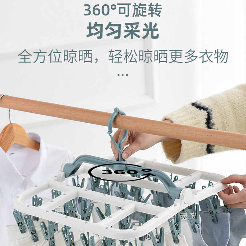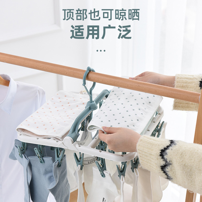 家用多功能夹子晾衣架宿舍内晾袜子衣架折叠多夹子防风晾晒架神器