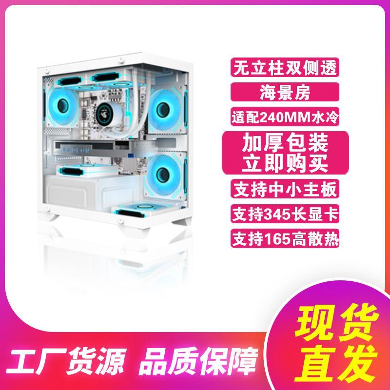 台科中电T2白色无立柱侧透明机箱海景房机箱水冷电竞matx主板机箱