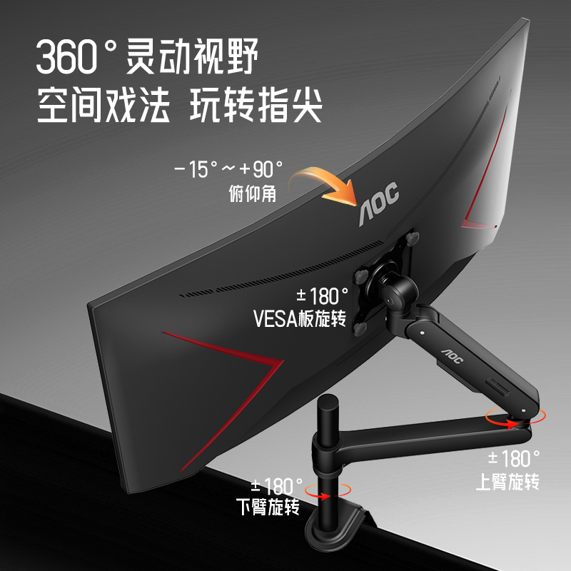 AOC立柱显示器支架可倒挂屏幕悬臂vesa电脑机械臂悬浮底座AM700