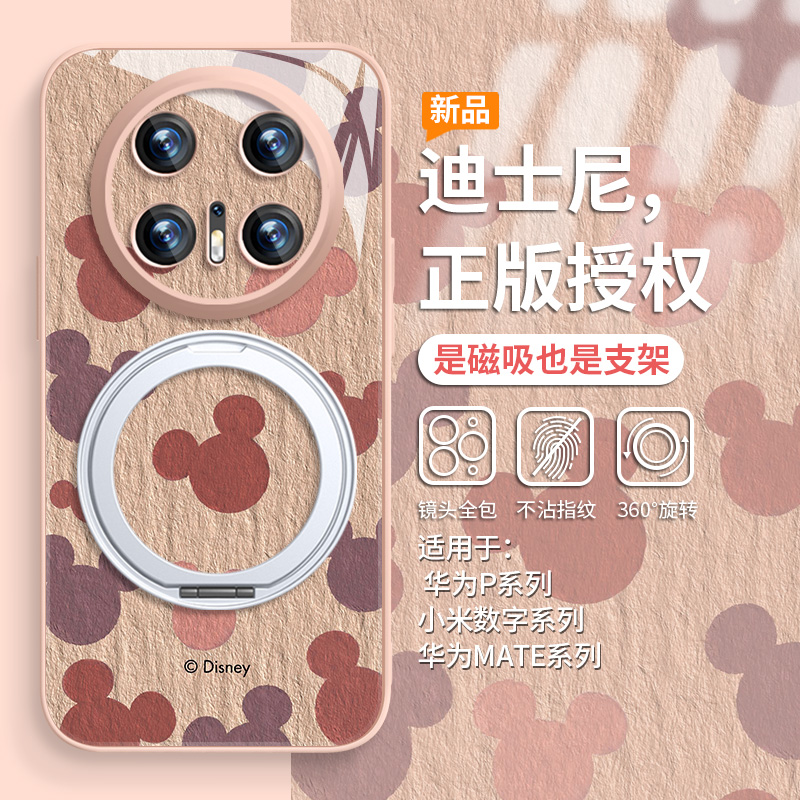 迪士尼米奇适用mate华为70pro手机壳mate60pro+支点壳pura70ultra磁吸支架小米15pro带指环iPhone16无线充电