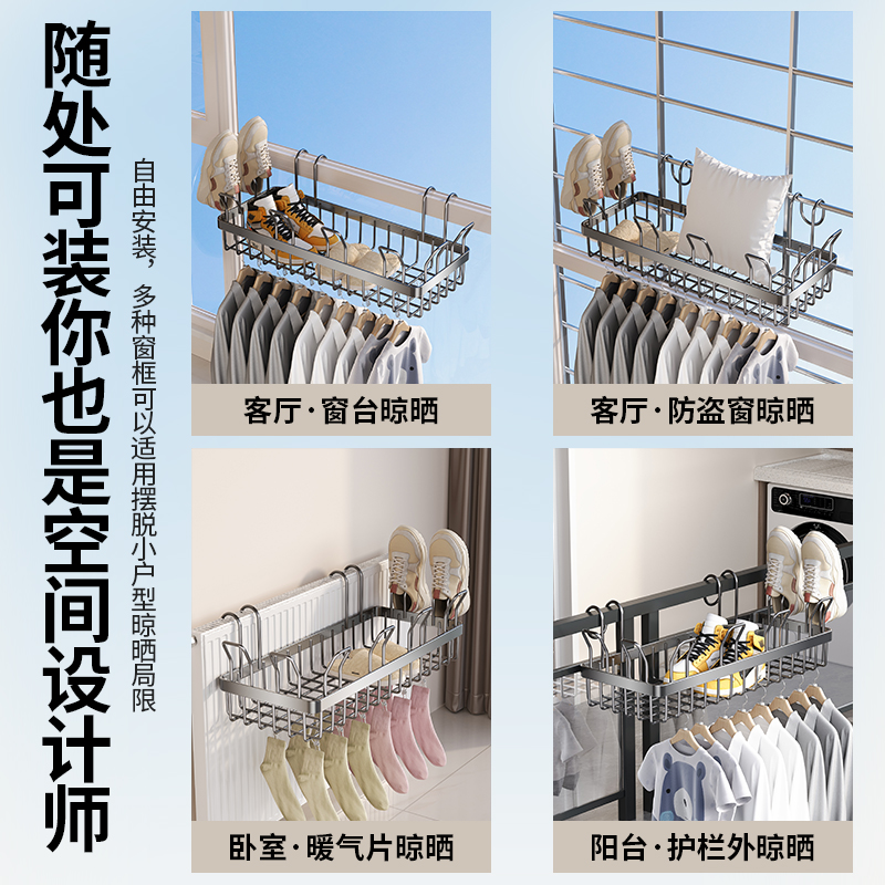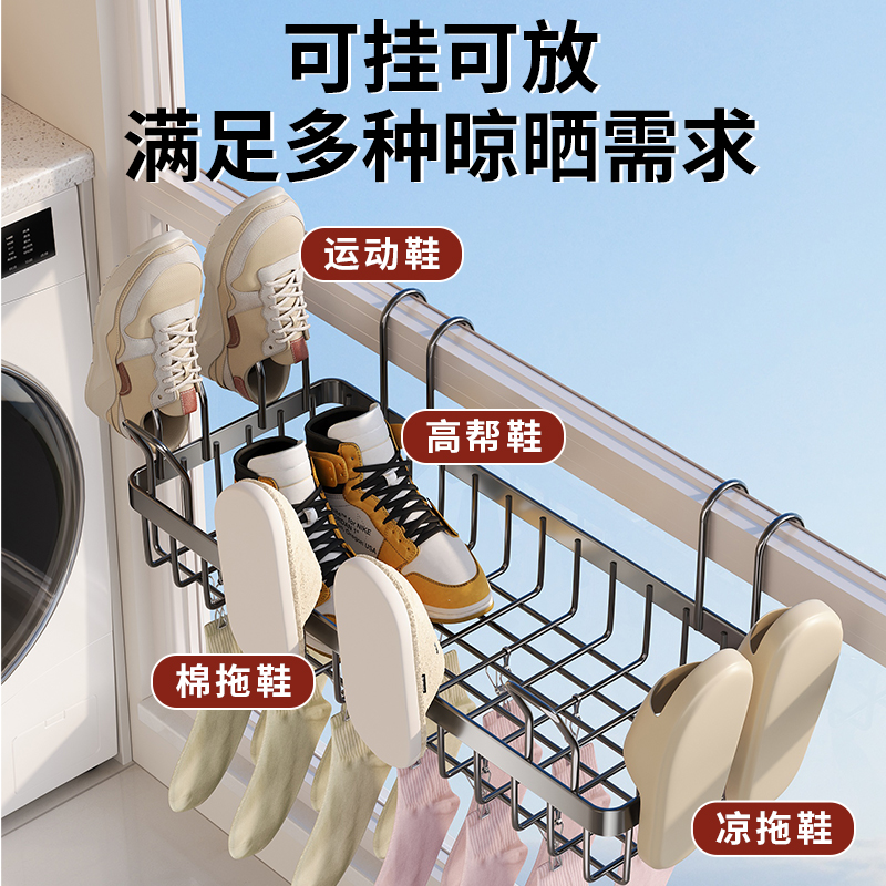 阳台不锈钢晾鞋架晒鞋防盗窗家用晾衣架窗户台室户外挂钩架子神器