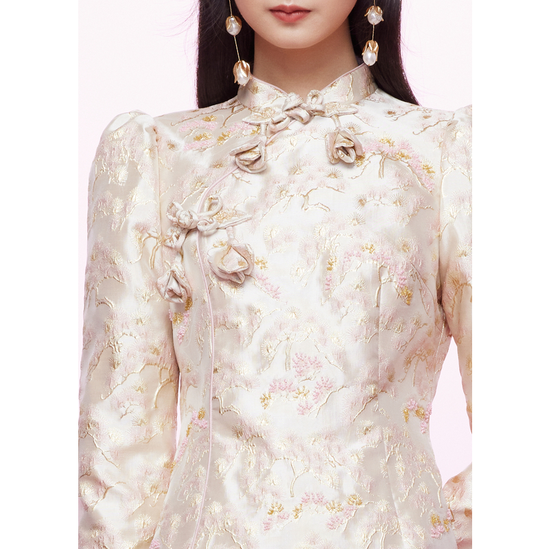 商场同款 可可尼COCOON秋冬新款新中式改良旗袍气质提花连衣裙女