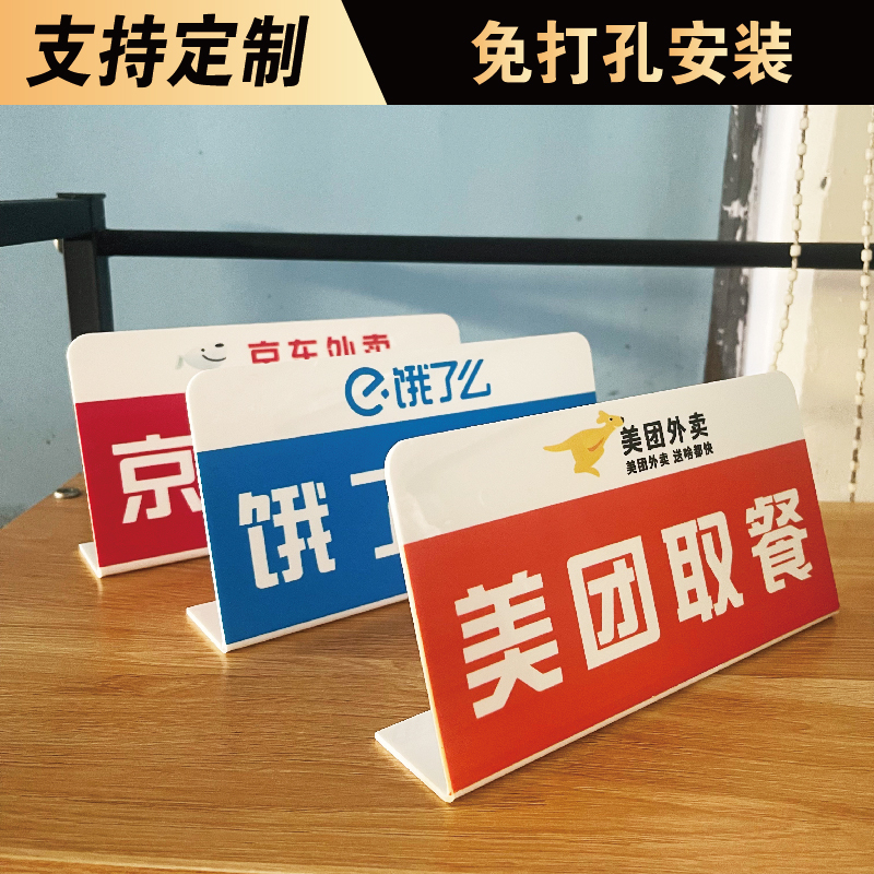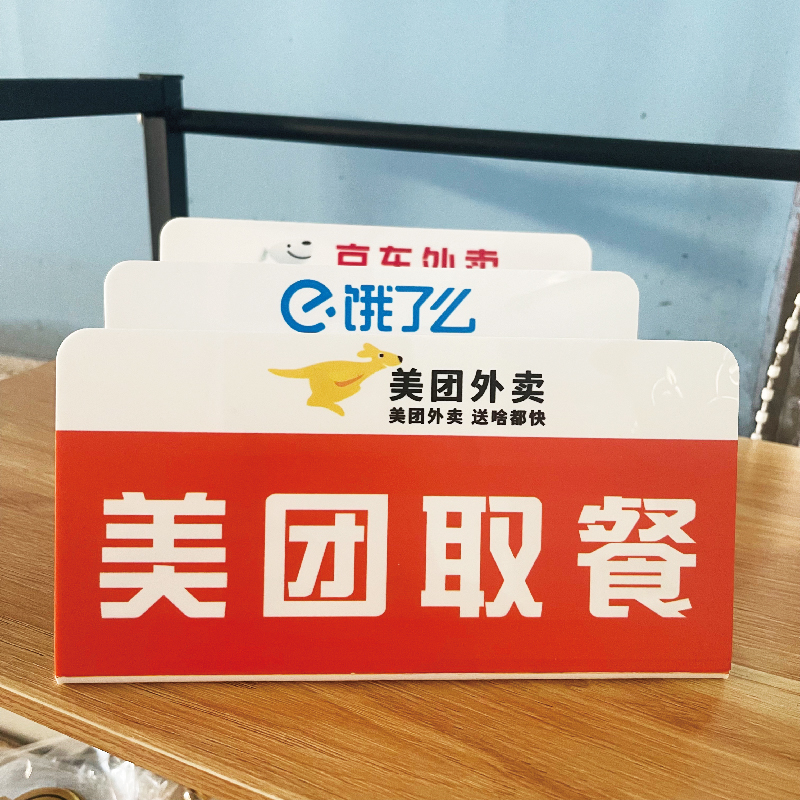 亚克力创意立式桌牌饭店奶茶咖啡店前台窗口门牌美团外卖京东取餐处温馨提示牌饿了么骑手取单等候窗口标识牌