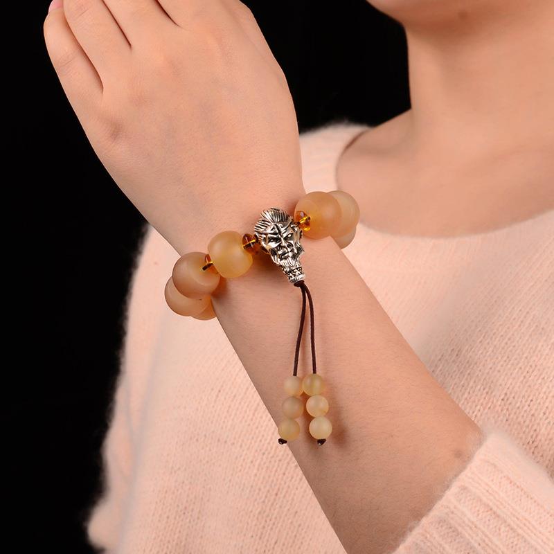 西藏天然保真羊角手串带血丝算盘珠苹果圆羊角佛珠手链一件批发
