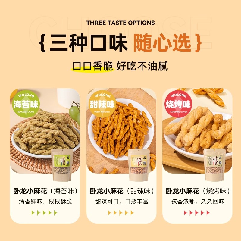 卧龙小麻花独立包装手工零食280g海苔烧烤味官方旗舰休闲解馋小吃