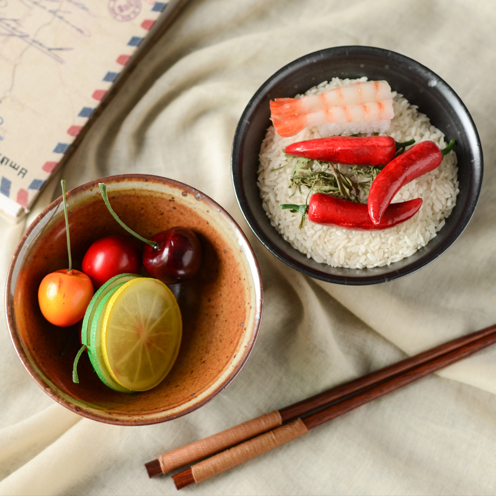 简约手工粗陶白米饭碗餐具家用复古汤面高脚碗简约加厚土碗可微波