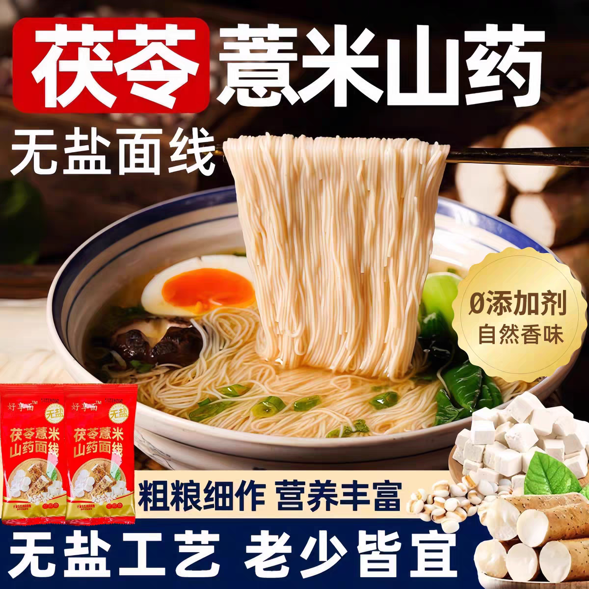 无盐茯苓薏米山药线面细面线手工龙须面特产挂面独立包装无添加