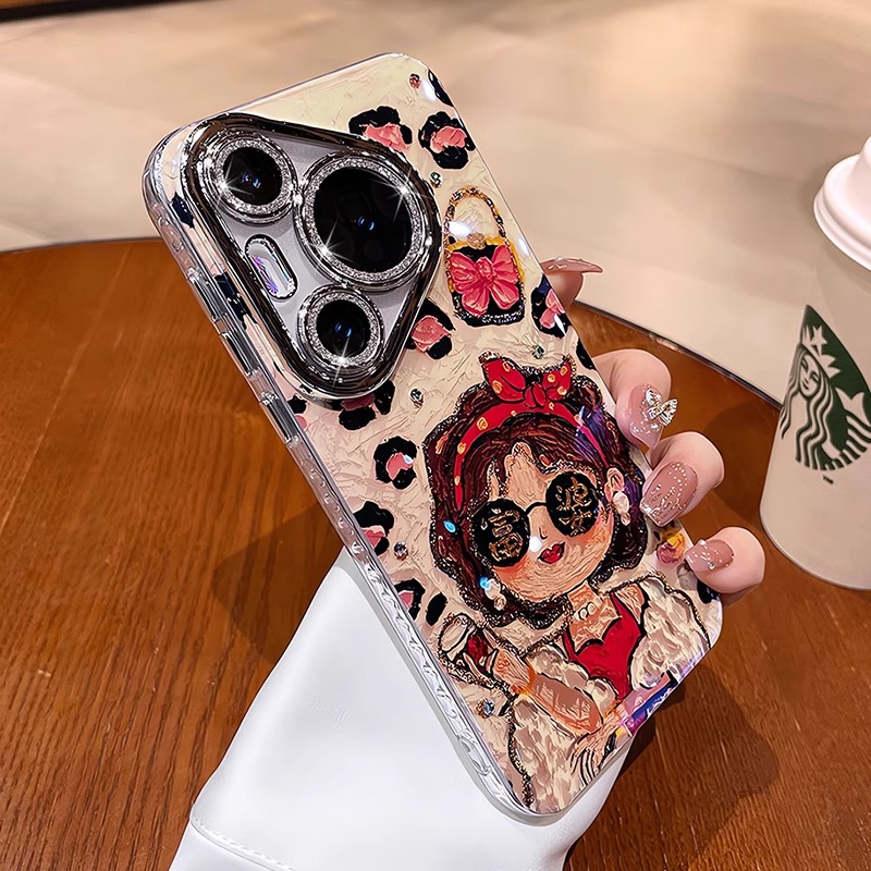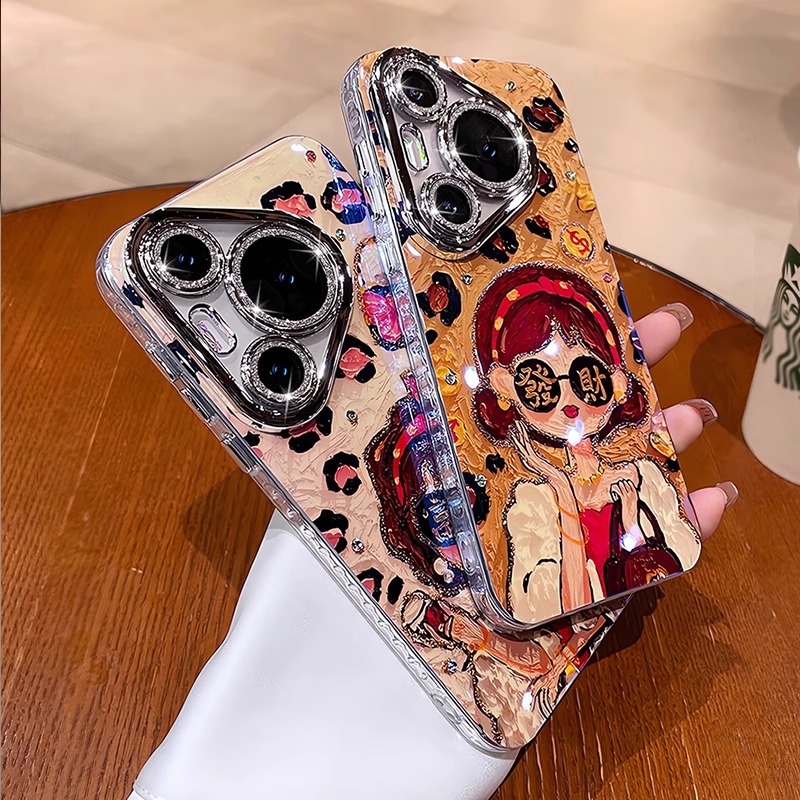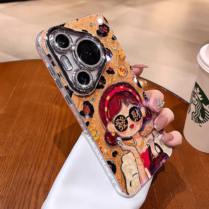 闪粉镜头膜适用华为pura70pro手机壳p70pro新款发财富婆pura70高级感小众全包防摔保护套卡通可爱女新年外壳