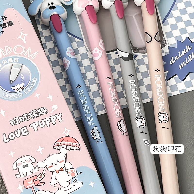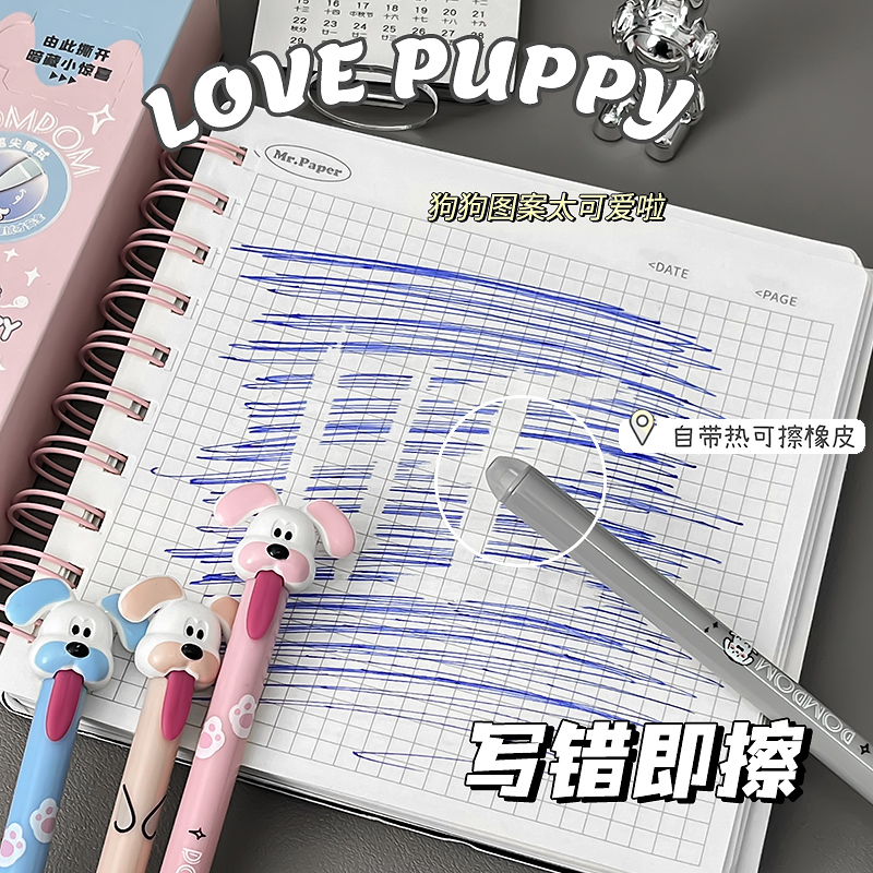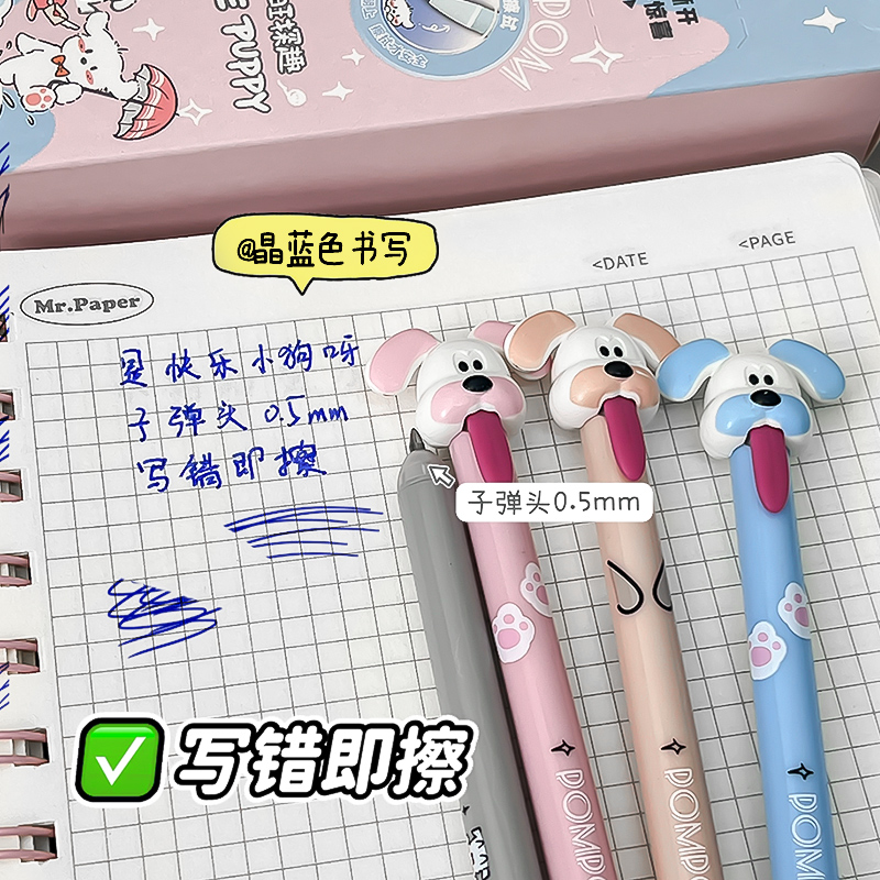 汪汪可擦笔小学生专用三年级舌头笔按动中性笔复写笔摩易擦圆珠笔晶蓝色黑色可爱小狗卡通魔力擦创意拉动出芯