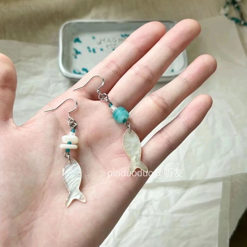 『夏日的鱼儿』可爱贝壳小鱼耳环小众个性百搭简约小巧度假风耳钩