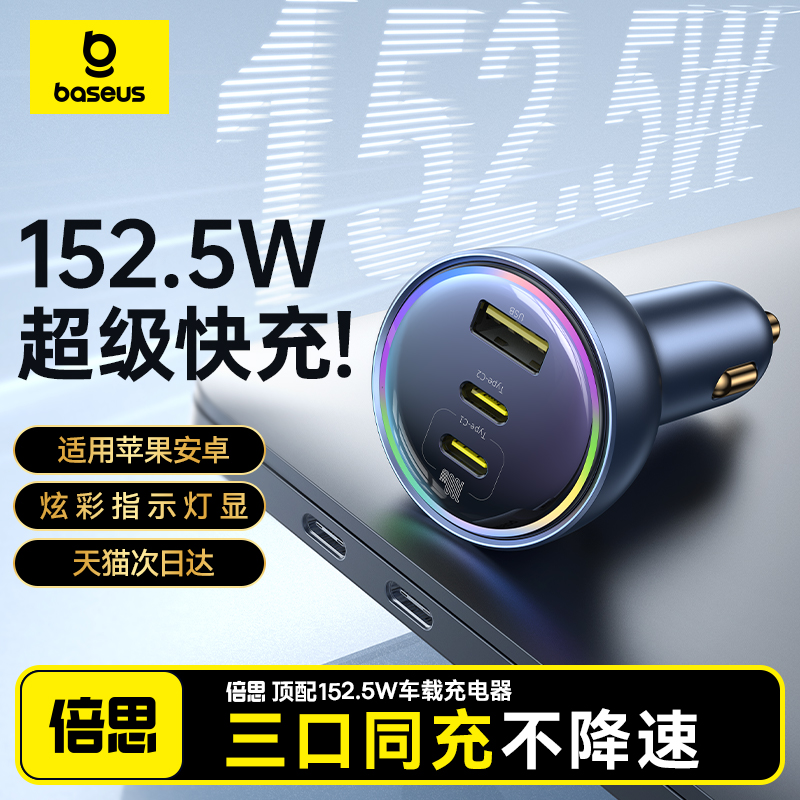 倍思车载充电器超级快充2025新款一拖二汽车点烟器转换插头车充PD
