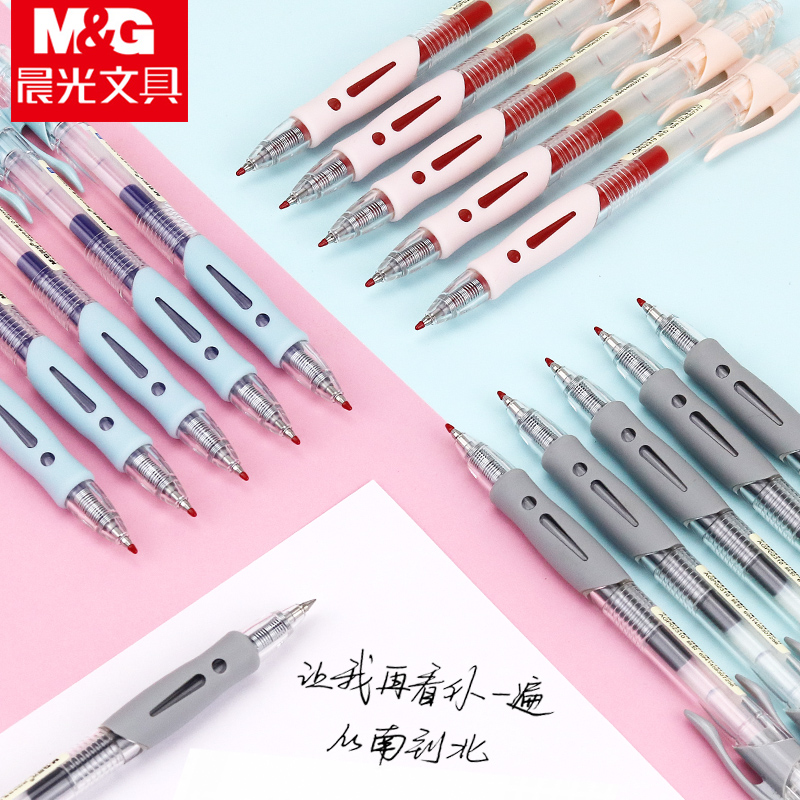 晨光中性笔按动式gp1008学生考试用笔0.5圆珠笔黑色水笔批发速干碳素笔医用处方墨蓝按动笔教师批改专用红笔