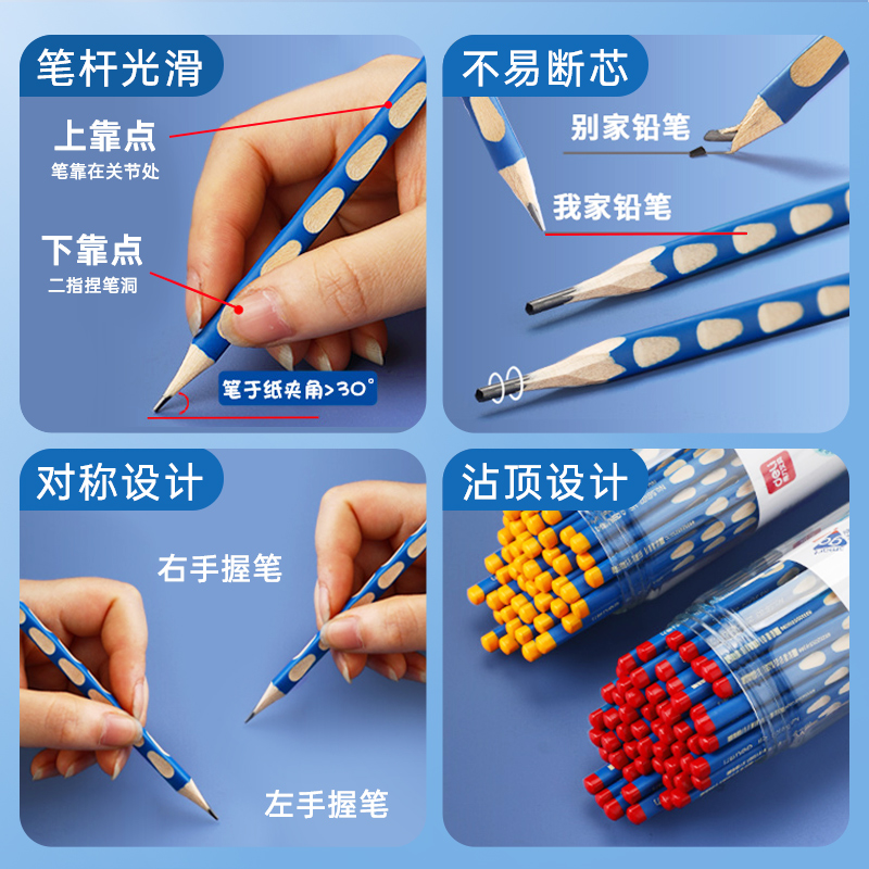 得力小学生洞洞铅笔一年级幼儿园加粗杆无铅毒2B2比初学者铅笔大三角杆HB学生儿童矫姿定制刻名字洞洞笔