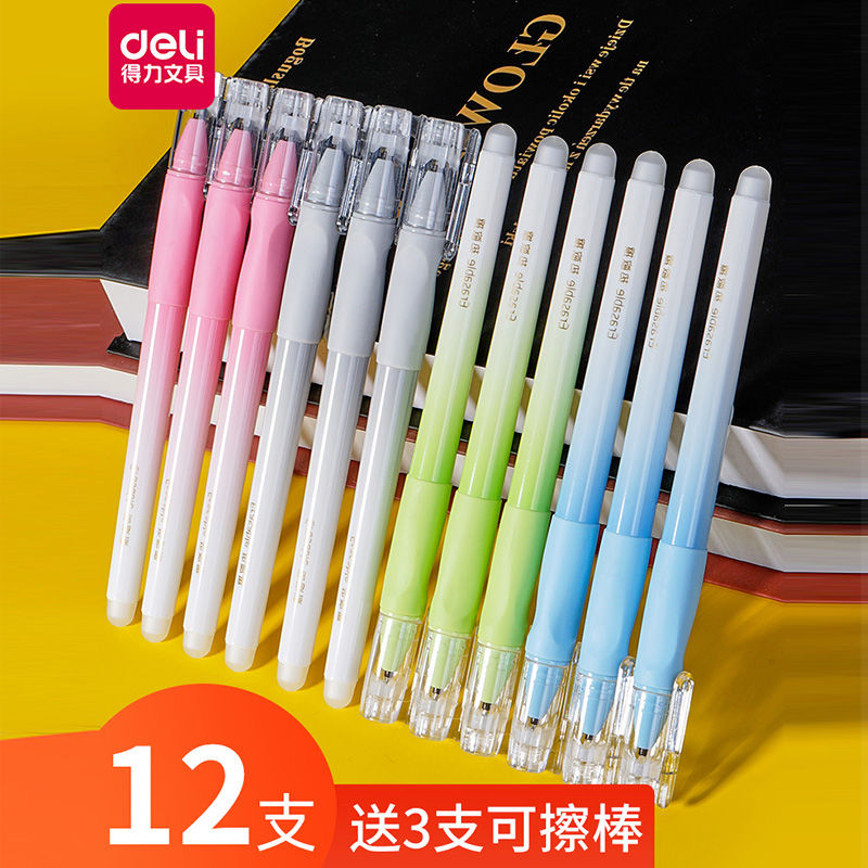 得力中性笔可擦笔小学生专用三年级可擦写拔帽按动男孩魔力擦摩易擦女孩儿童易可擦热敏擦晶蓝色笔芯黑色水笔