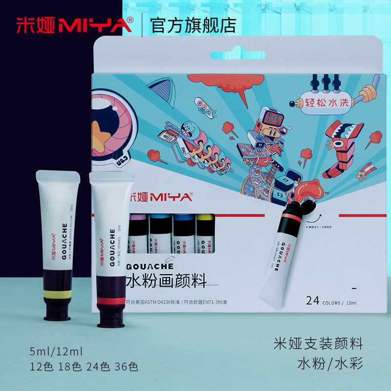 极速支装水彩水粉画颜k料5ml/12ml可翻盖12色18色24色36色可水洗