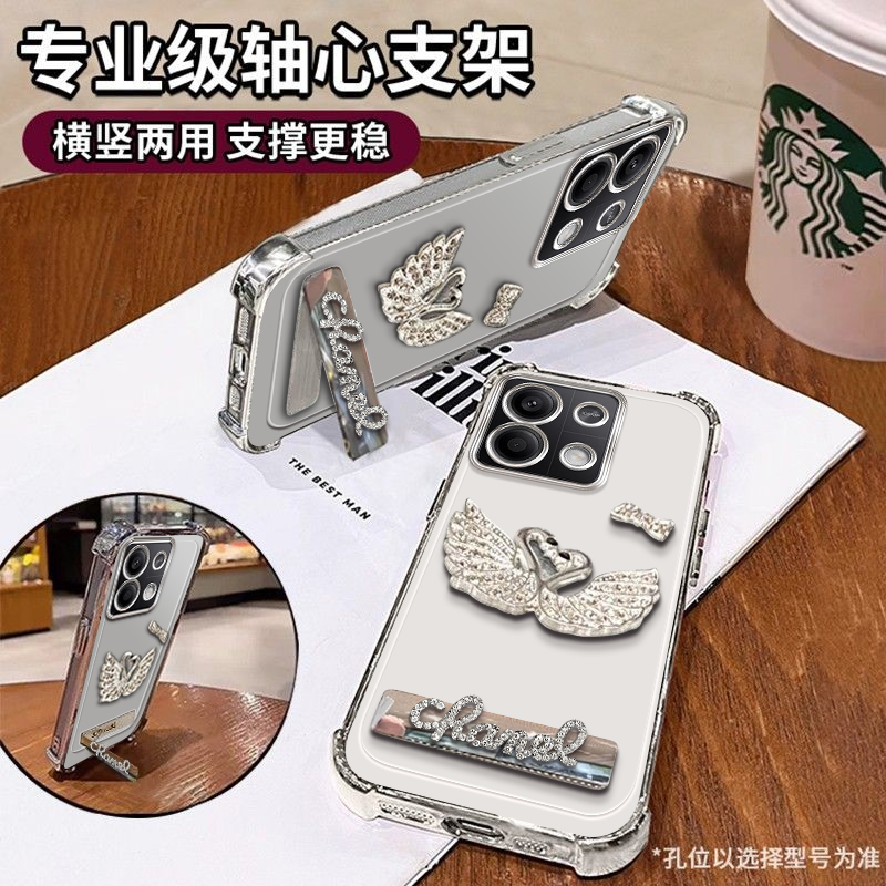 适用红米Note13Pro手机壳闪钻天鹅电镀四角防摔Redmi简约硅胶气囊全包Note13闪钻字母电镀支架保护套