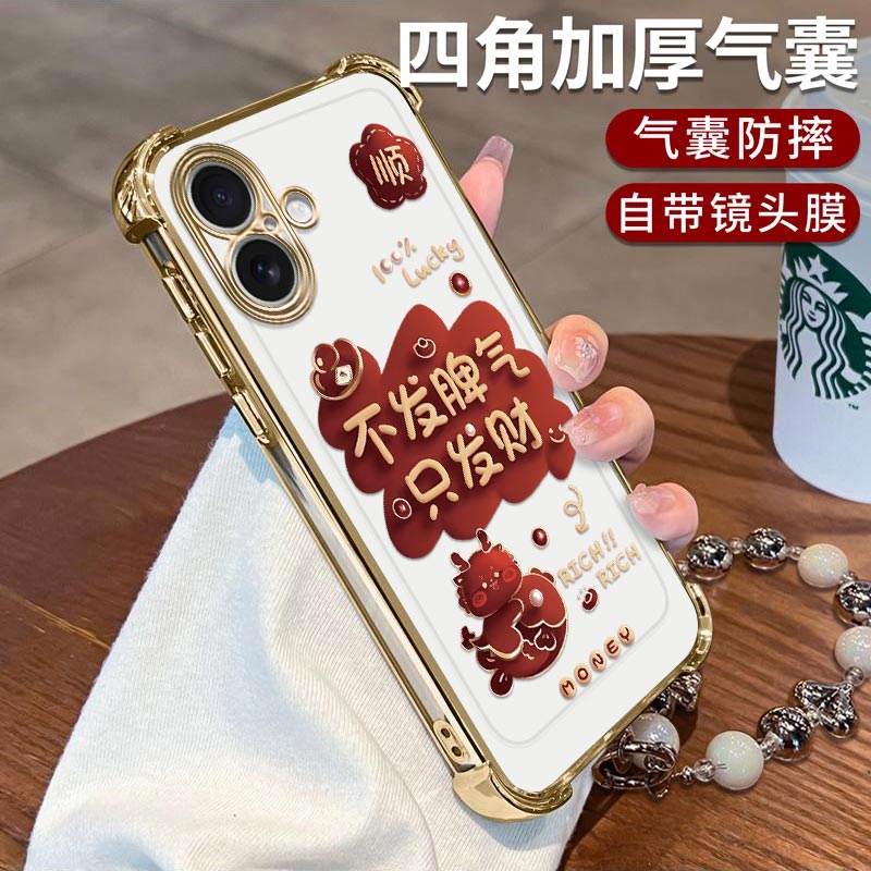 适用苹果16Pro手机壳16PLUS发财金蛇电镀四角防摔iPhone16简约硅胶气囊全包16promax高颜值手链女款保护套
