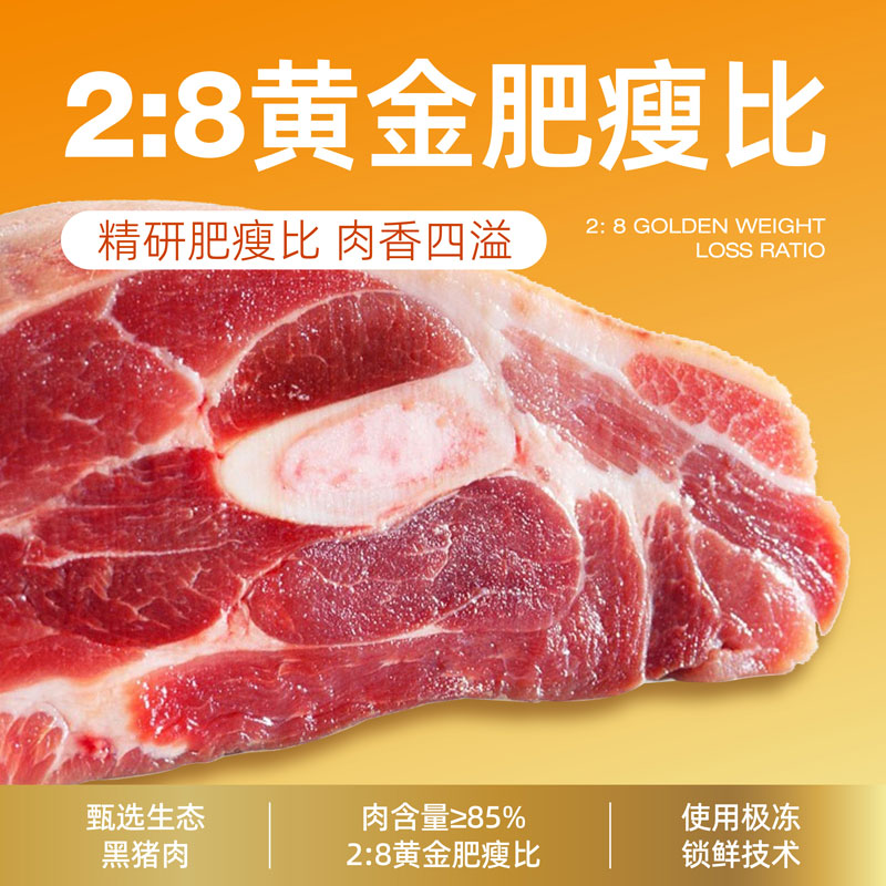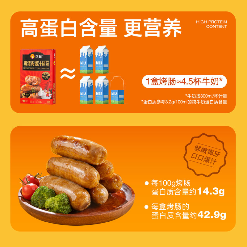 正新黑猪肉爆汁烤肠85%肉含量地道肠火山石原味黑胡椒冷冻半成品