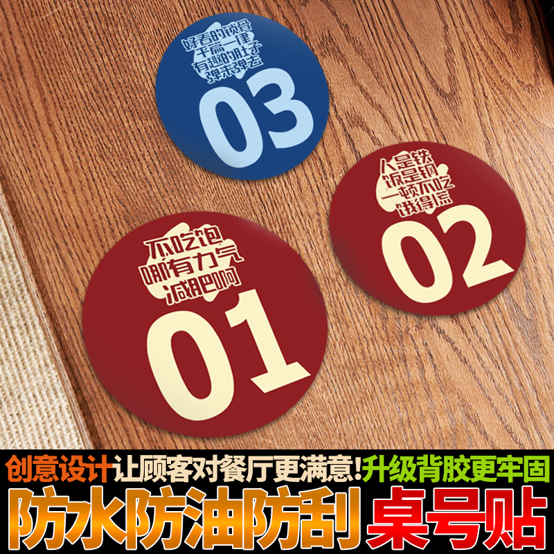 网红大排档数字编号码贴纸餐桌数字贴防水防油烧烤店火锅店饭店桌牌号码贴餐厅数字贴PVC趣味防滑桌号贴