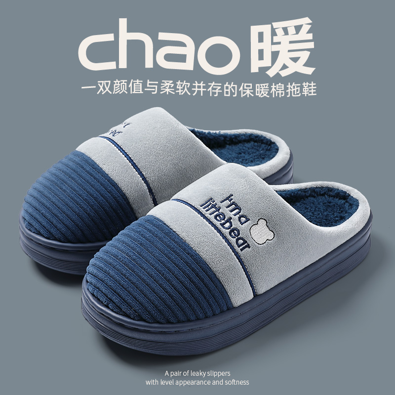 棉拖鞋男士冬季2025新款室内家居大码防滑厚底毛绒拖鞋女款外穿冬